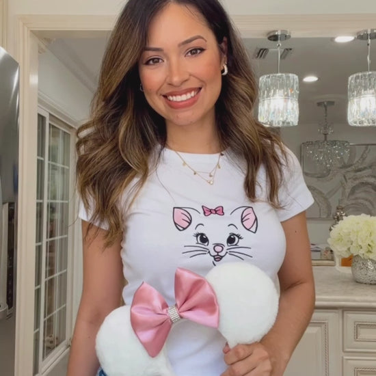 Visiting the parks on a hot summer day? Stay cool and fresh in our fitted tees! This is a fully embroidered fitted tee, with comfortable stretch. The fabric is soft, micro-ribbed, light and breathable - well suited for long park adventures! The perfect option for a cute, timeless look featuring your favorite darling Marie.